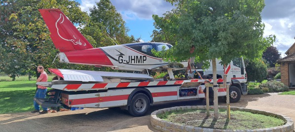 Socata TB20 Trinidad G-JHMP being unloaded at our Aston Abbotts Base
